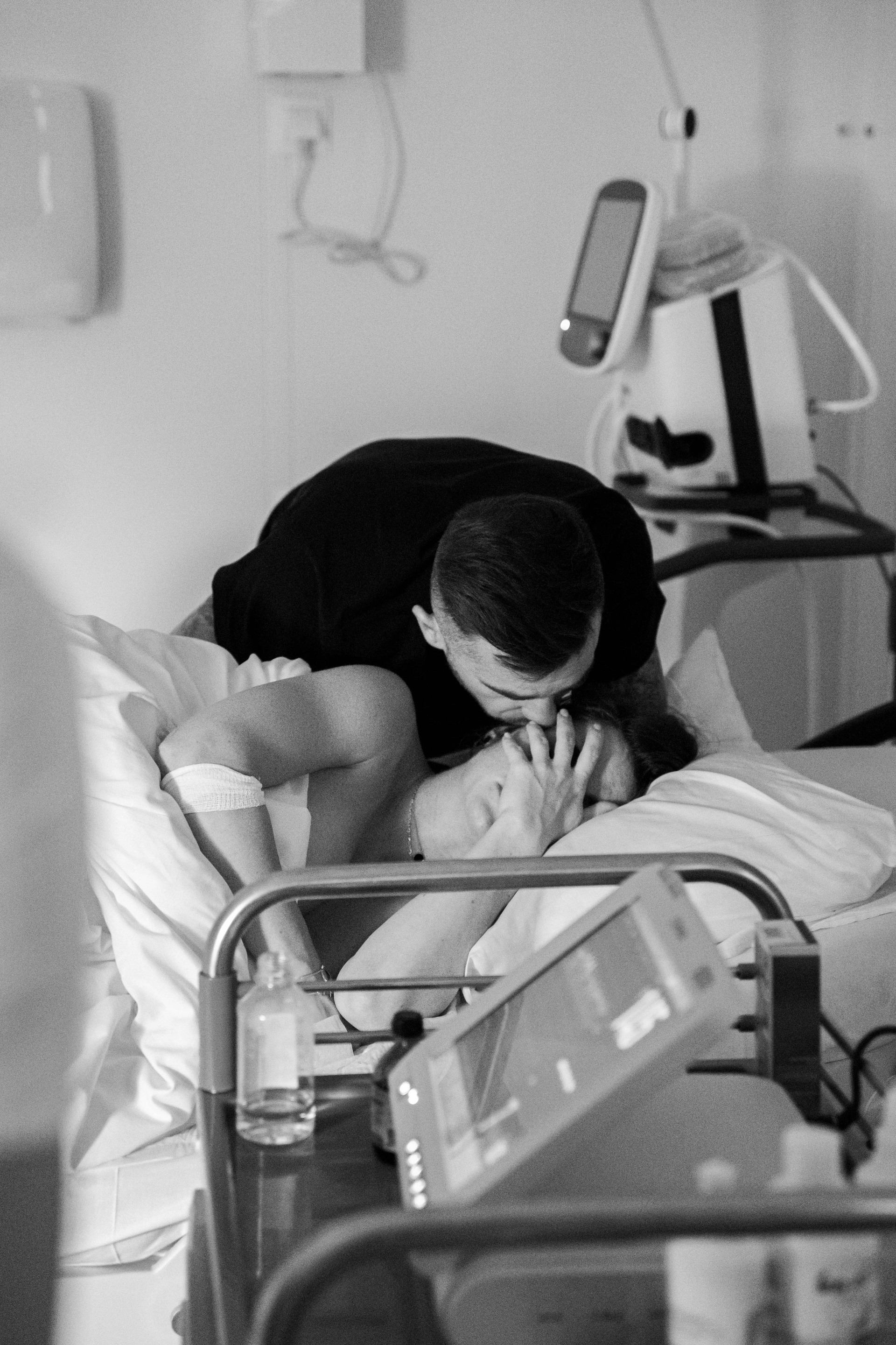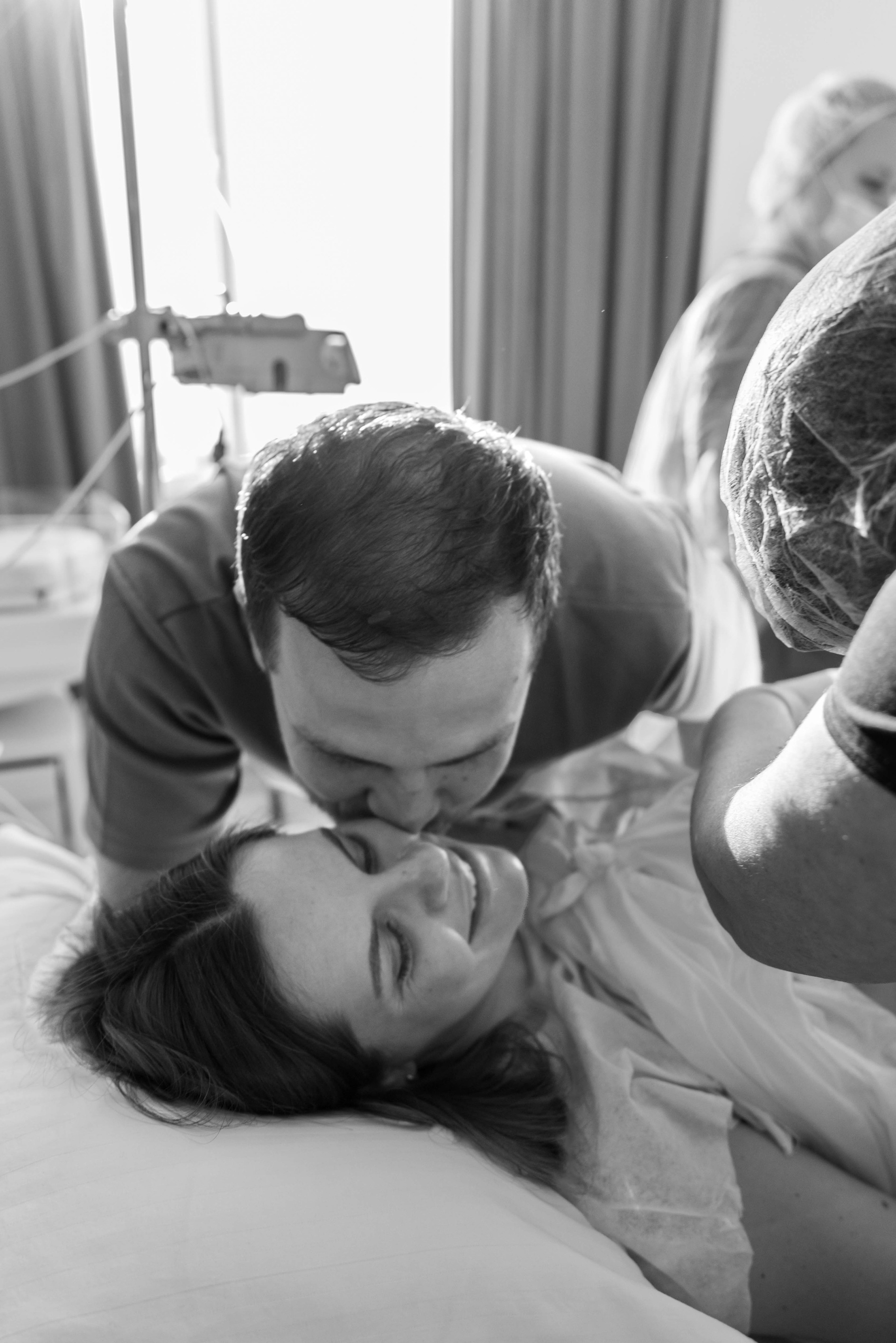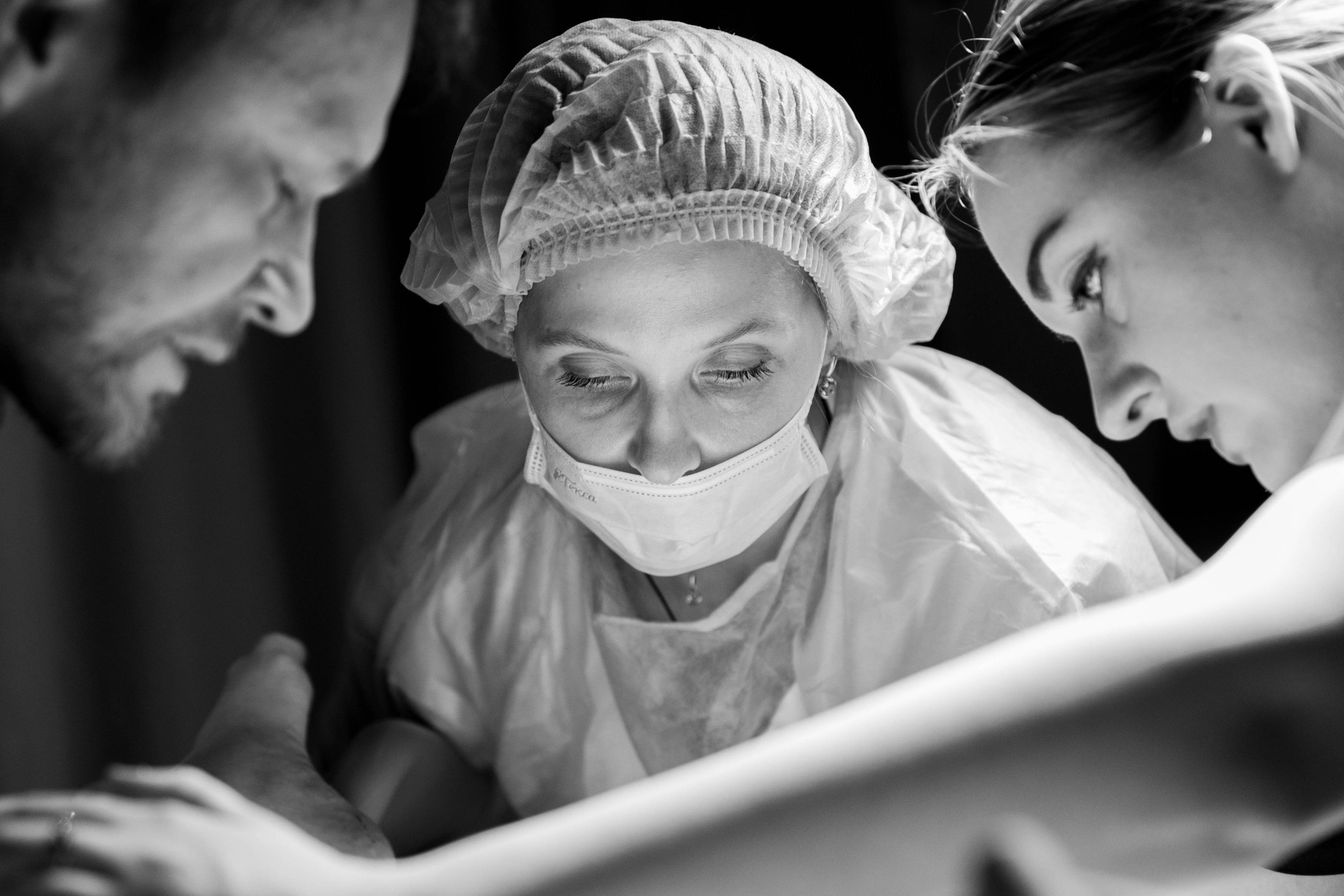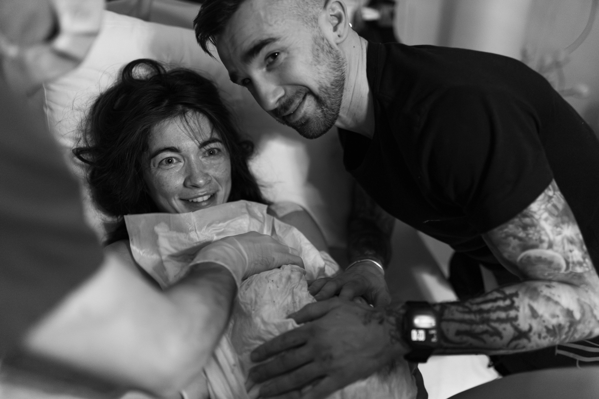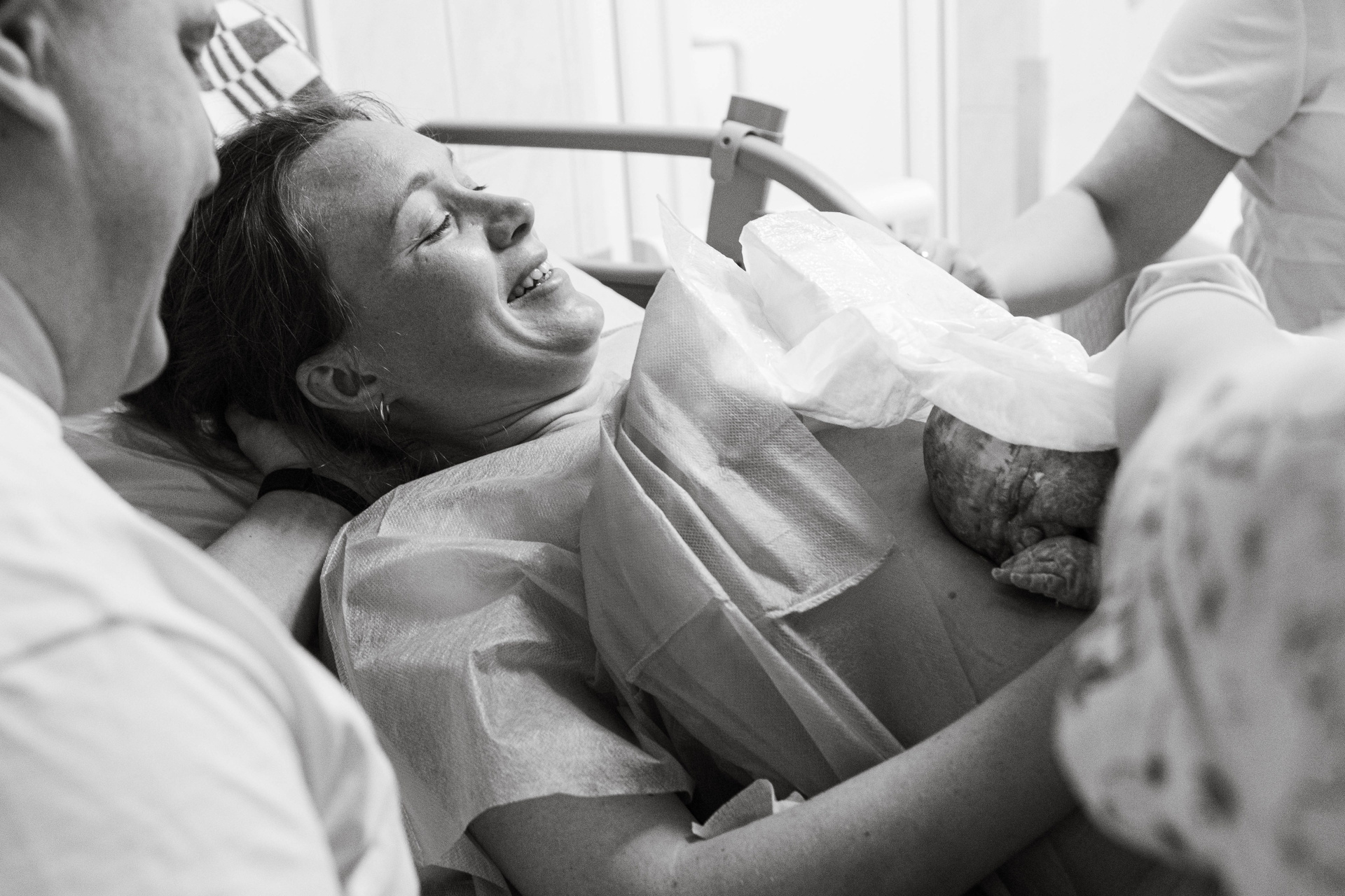 Вот он, самый главный кадр — момент первой встречи. Широкие, полные изумления глаза мамы, впервые видящие свое дитя, слезы счастья, поцелуи, первый вздох малыша, общий для троих.